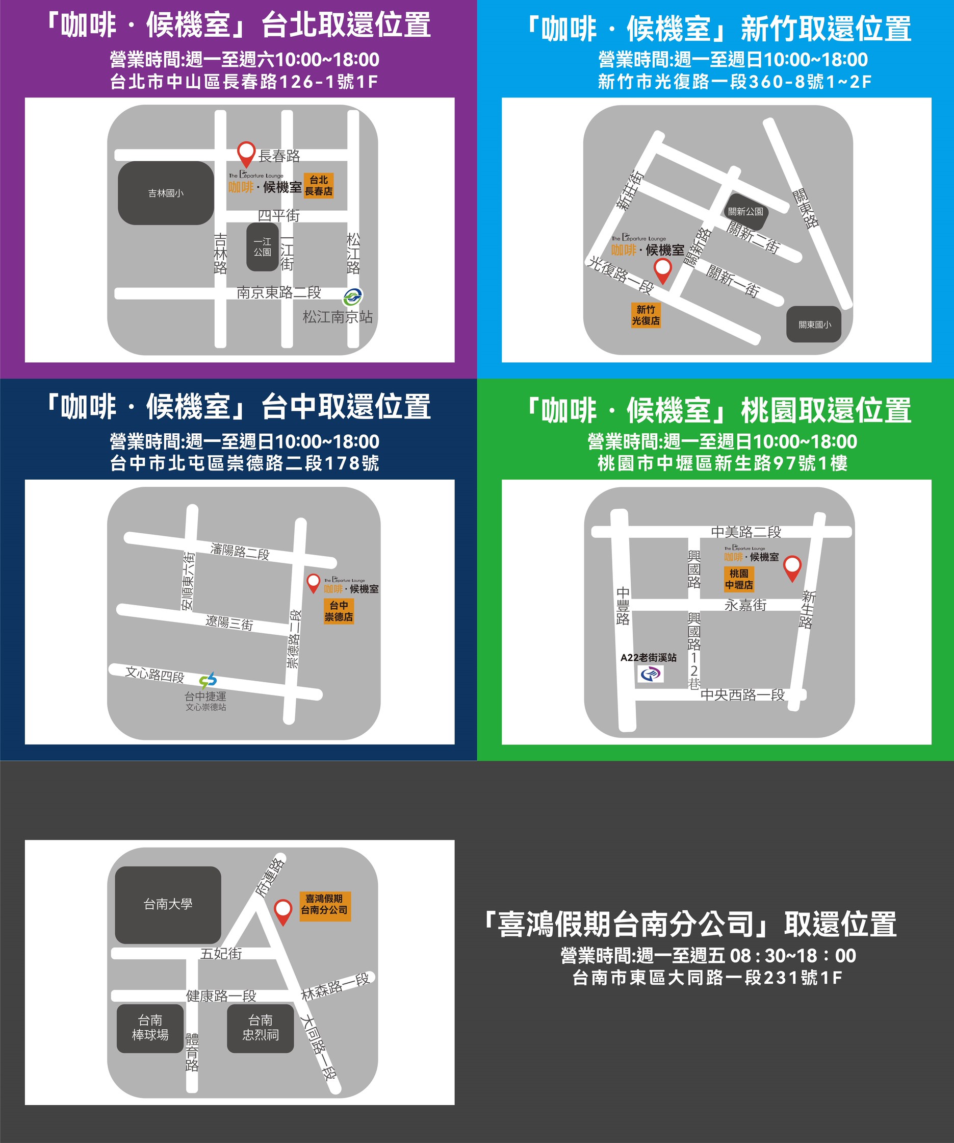 .中壢新生店:桃園市中壢區新生路97號1樓/電話:03-4260069/週一至週日 10:00-18:00