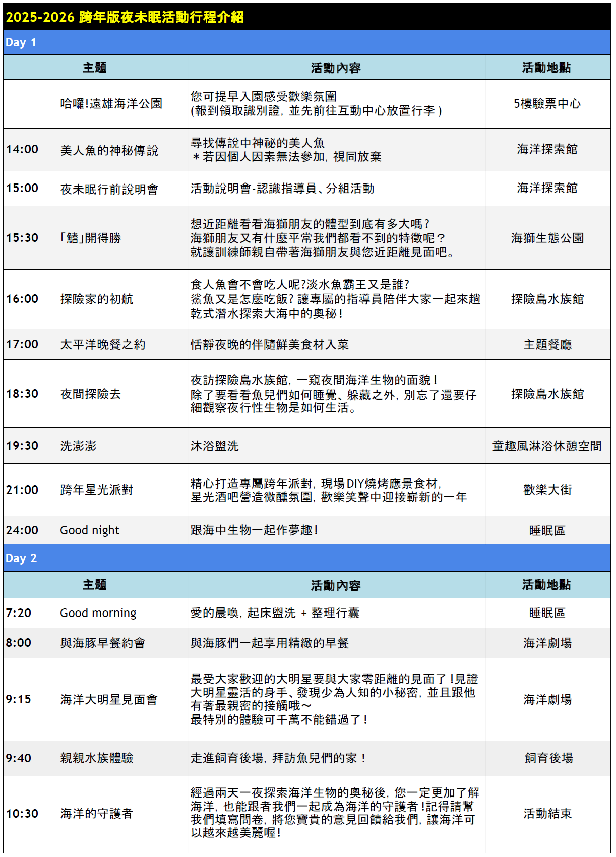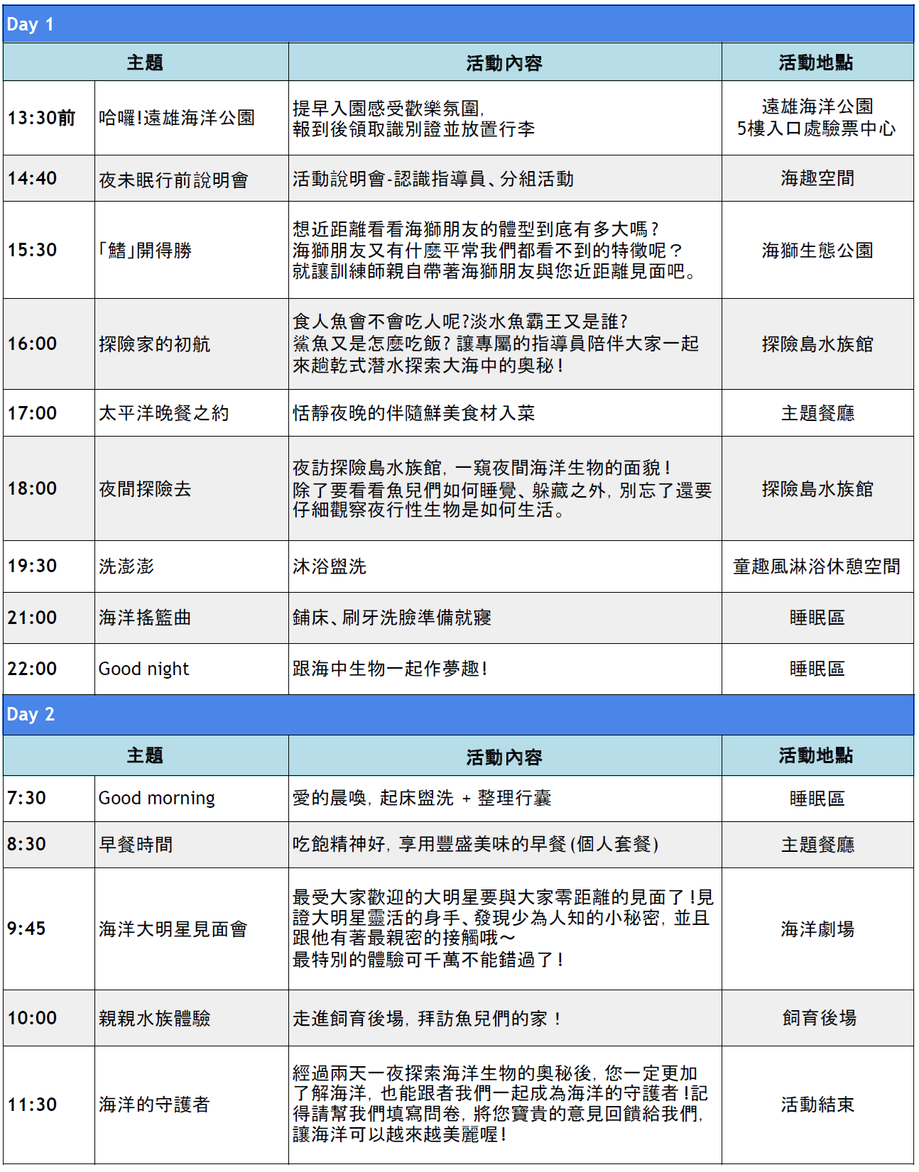 註:任何疑問歡迎致電洽詢遠雄海洋公園,電話:(03)812-3168