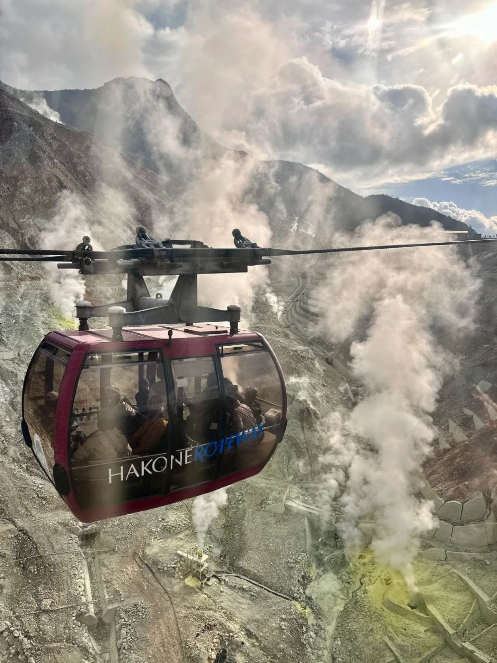 ▲ 大湧谷的景色非常震撼,荒涼的山體和噴發的煙霧演繹出獨特的景觀,不愧曾被稱為地獄谷。在大湧谷上方運行著箱根空中纜車,前往桃源台方向的途中還可欣賞富士山和蘆之湖的景色。