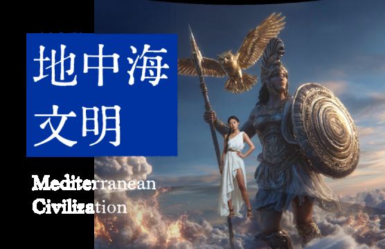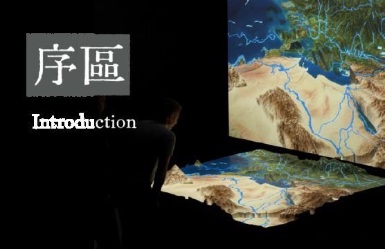 【地中海文明——神話與理性的交會之地】 地中海文明以「神話至理性」的文化轉折為主題,展區以光影、建築語彙與動態符號呈現希臘與羅馬形塑的思想版圖。 柱廊、拱門與雕像輪廓在空間中依序浮現,形成光亮與層次感兼具的視覺節奏,象徵文明間的交織與推演。多重意象並置,展現地中海文明如何在想像與思想之間取得平衡,象徵人類從神祇敘事邁向理性世界的文化轉換。