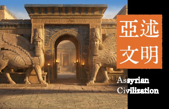 【亞述文明——力量與秩序的吼聲】 亞述文明以王權與征服為主軸,其展區以古代宮殿為概念建構沉浸式空間。 光影在立面上重新組構狩獵浮雕—獅子的肌理、奔馳姿態与拉弓的瞬間被放大,象徵亞述崇尚力量的文化精神。四周的楔形文字宛如自泥板中浮現的歷史刻痕,在暗色空間中逐一亮起,展現亞述以紀錄治理國家、制定法典與保存戰功的秩序邏輯。書寫在此被視為奠定文明結構的重要基石。