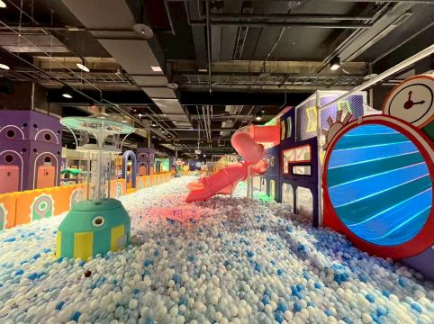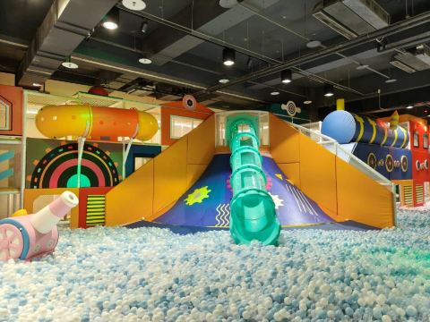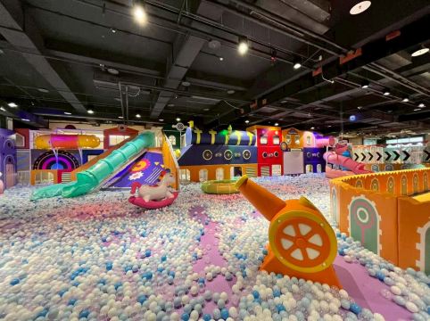 A區 【火車城市區】 🧗♂ 繩網迷宮(交叉闖關區、翻山越嶺、小刀山障礙區、探險獨木橋、沙包闖關區、競技牛仔⋯) 🍩 喇叭大滑梯、旋轉大滑梯 🛝 隧道滑梯 🎈 百萬大球池🥀 仙女散花 🚀 高射砲台 🍌 超級香蕉船 🚣♀ 橡皮艇球海大冒險 🕹 魔法VR大做戰