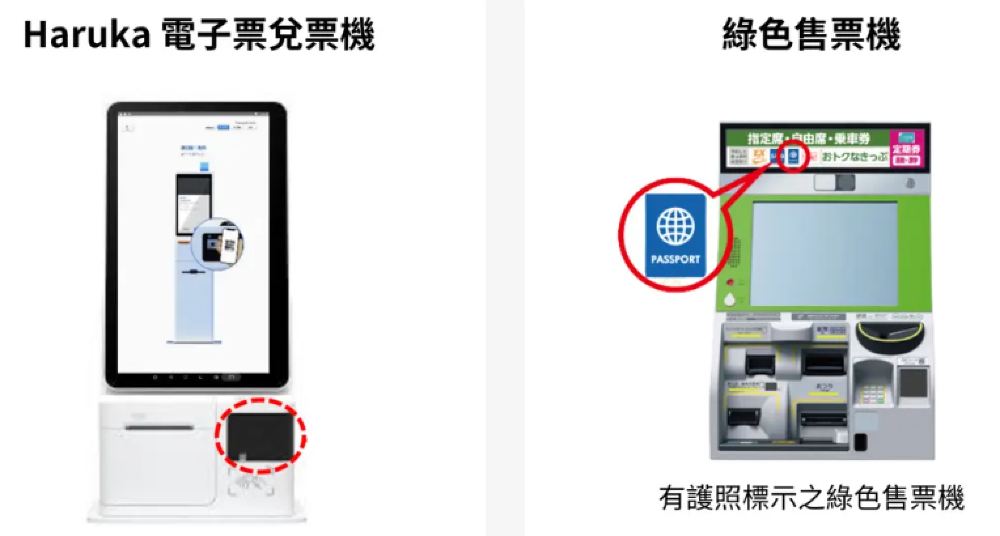 ※若售票機故障或持有之護照沒加IC晶片請至指定車站綠色窗口兌換實體車票。