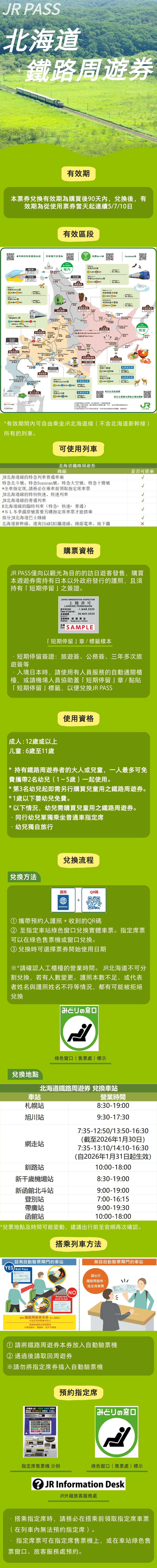 ※一旦遺失(包括被盜),將不會重新發行。兌換後的周遊券的相關條件,將遵循北海道旅客鐵道公司的條款以及日本的法律。