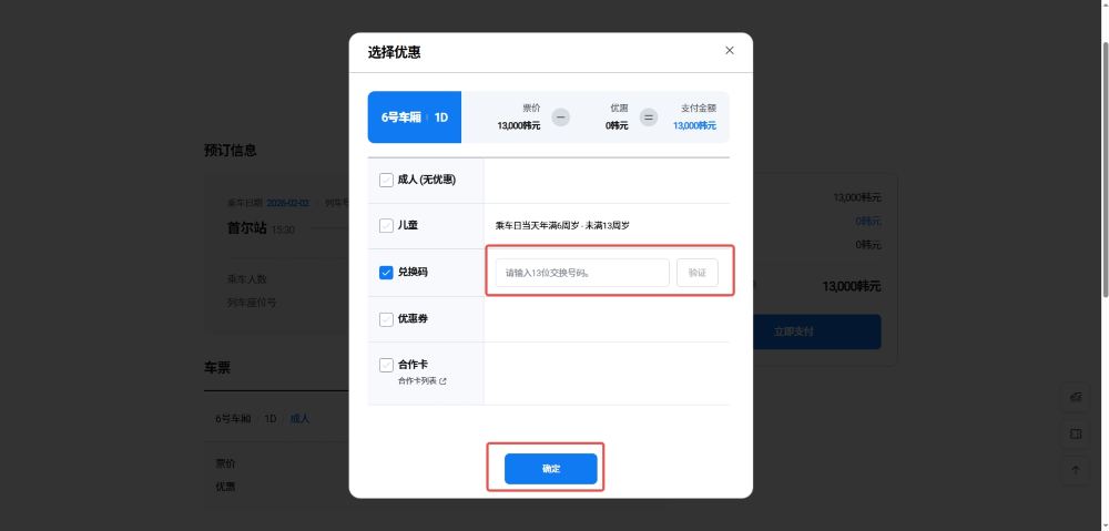 請在勾選兌換碼後輸入憑證下方的 13 位交換號碼,