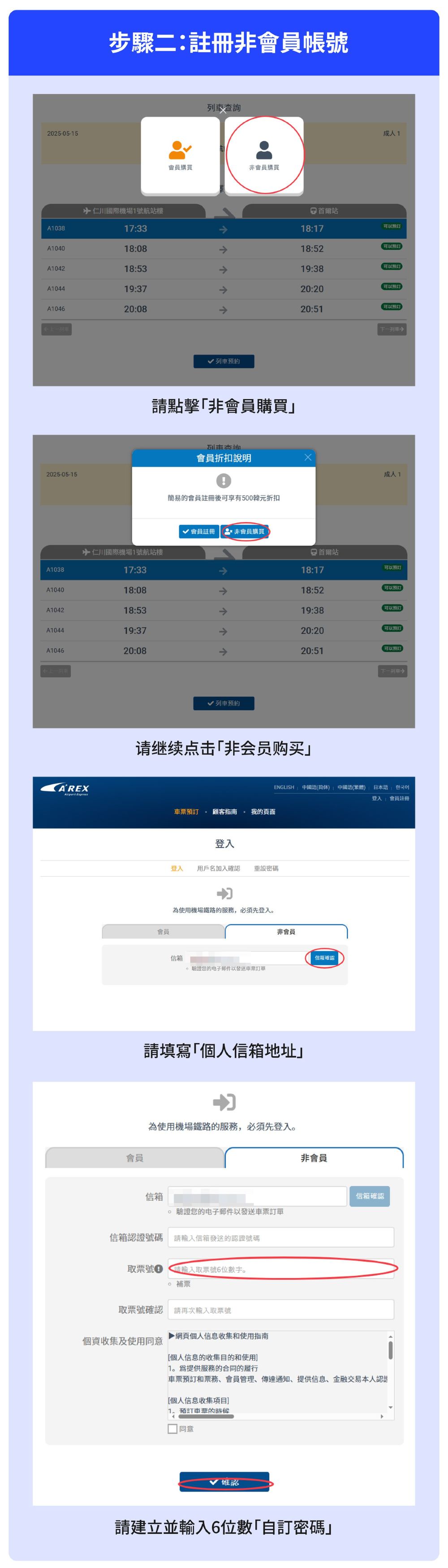 請在AREX機場快線官網 ,依照下面的流程進行事前登記。