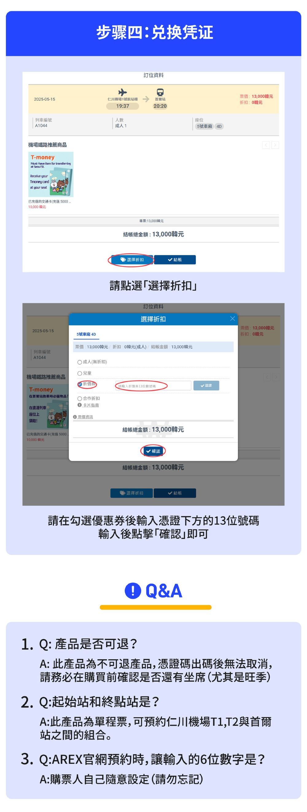 無法直接在現場使用,無事先確認座位與無提前在AREX官網(https://www.airportrailroad.com/)預約導致無法使用情況發生時,無法退款!