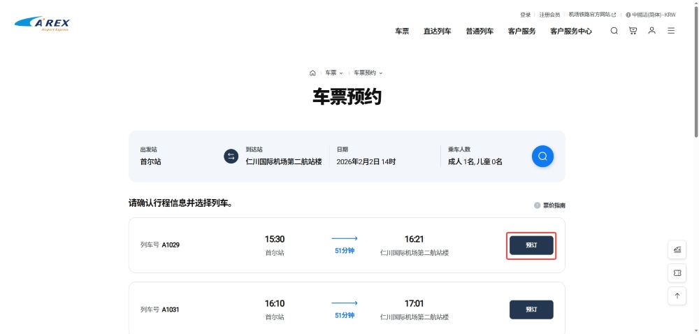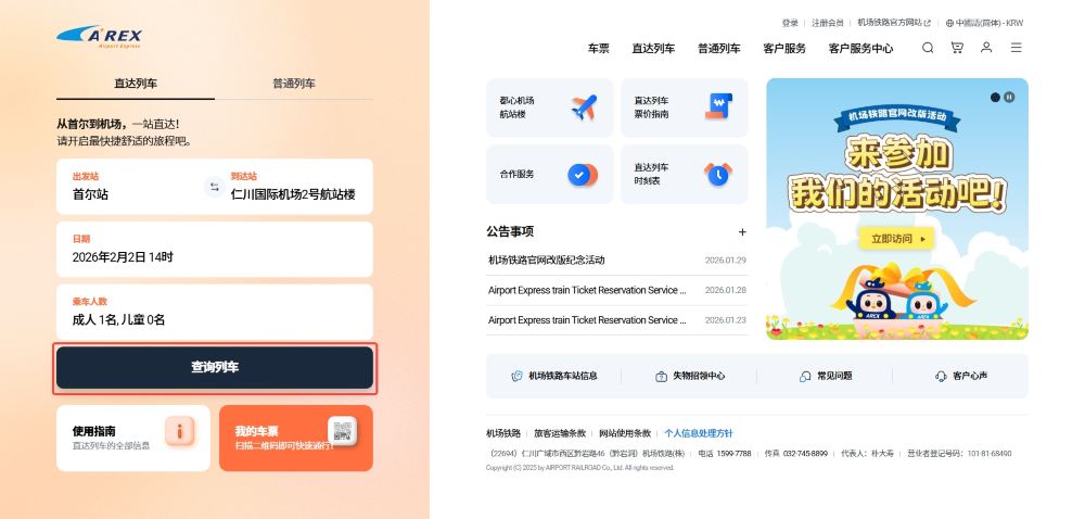 *以韓國時間為準,1月15日凌晨1點至4點,AREX官網的預約售票系統因伺服器維護將暫時中斷。