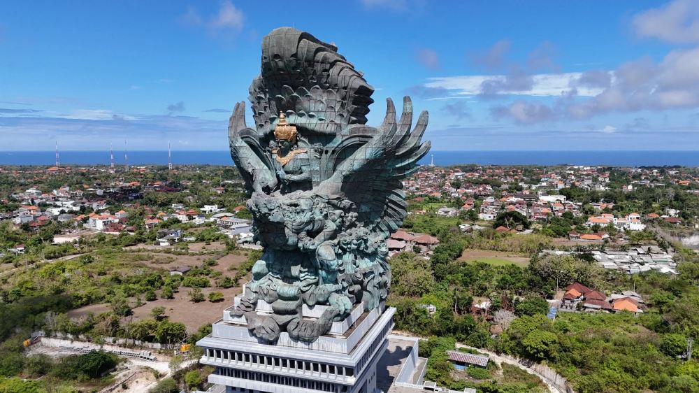 ▲神鷹廣場(Garuda Wisnu Kencana Cultural Park):以大神鷹雕像為核心,雕像高約122公尺,展現Hindu神話中神鷹伽魯達背負毗濕奴神的場景。園區內還有傳統建築與雕塑,集中體現峇里島藝術與宗教文化。