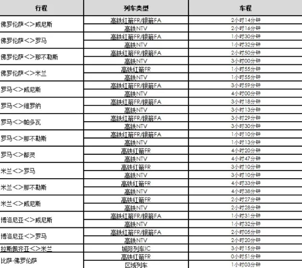 - 義大利全境通票適用於義大利境內鐵路網絡,可無限次乘坐