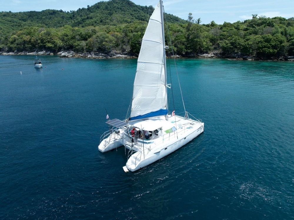 ▲ 莫吉托號帆船——46人精緻團 ●可提供中/英文導遊,普吉島全島飯店接駁,一次性咬嘴 ●豐富玩樂:浮潛、槳板 、手捲線體驗海釣、觀神仙半島日落 ●乘坐原住民拖拉機瀏覽皇帝島 ●凱莉灣私人沙灘,提供免費沙灘椅,鳥巢,網紅大鞦韆