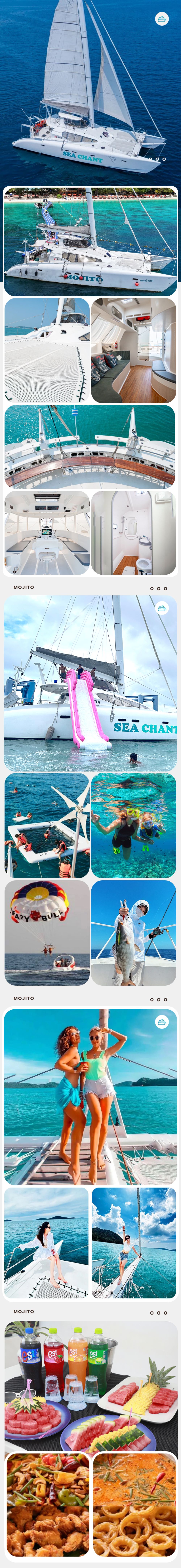 ▲ 2.13-2.22 莫吉托艦隊將由莫吉托2號/4號運行 莫吉托2號——精緻28人小團 ●可提供中/英文導遊,普吉島全島飯店接駁 ●行程同莫吉托帆船