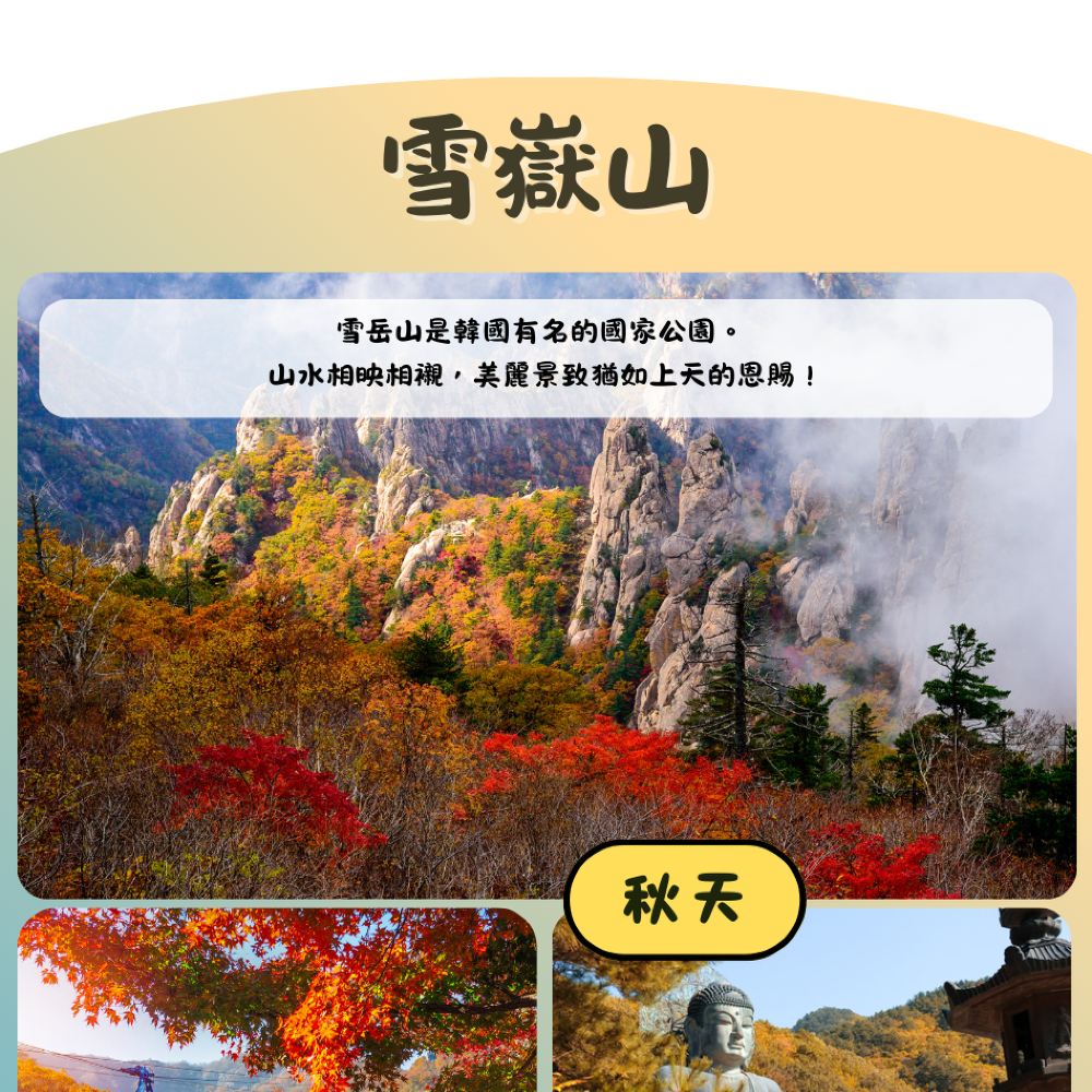 山水祕境雪山|深入雪嶽山國立公園,山巒環繞溪谷潺潺,四季景色變幻如畫,欣賞韓國經典的自然風光。