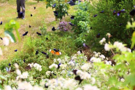 卓也的蝴蝶季約在每年7、8月,紫斑蝶、樺斑蝶、絹斑蝶、青斑蝶、青帶鳳蝶是在滿山滿谷的蝴蝶派對中常見的身影,他們的舞姿為園區內增添了一份驚艷!