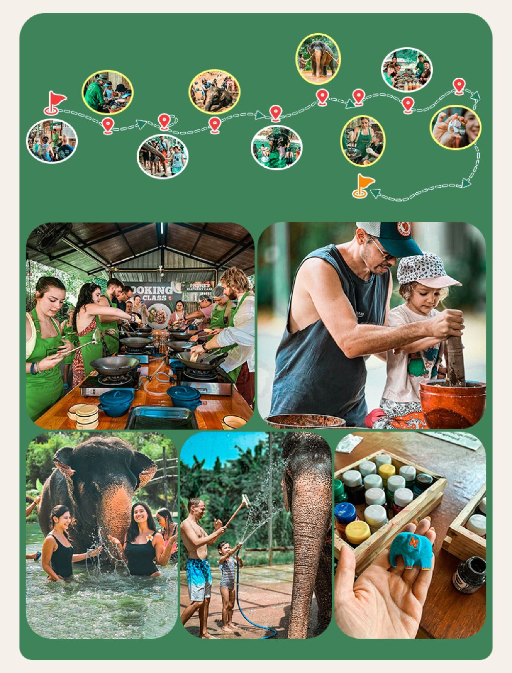 - 核心體驗包含:準備水果並餵食大象、大象泥漿浴 + 清洗互動、學習基礎大象保護知識