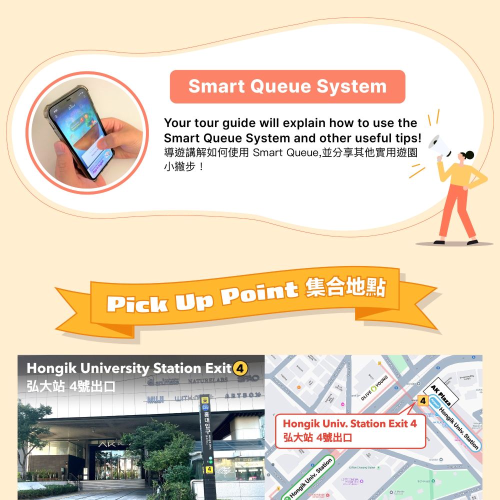 22:05 首爾 弘大站 解散 回程時間會依照愛寶樂園當日的閉園時間調整 * 愛寶樂園關園時間會因天氣或季度有異,一切以官方網頁為準* 1) 7點閉園時:19:15 返回首爾 2) 8點閉園時:第二班: 20:15 返回首爾 3) 9點閉園時:第二班: 21:15 返回首爾 4) 10點閉園時:第二班: 22:15 返回首爾