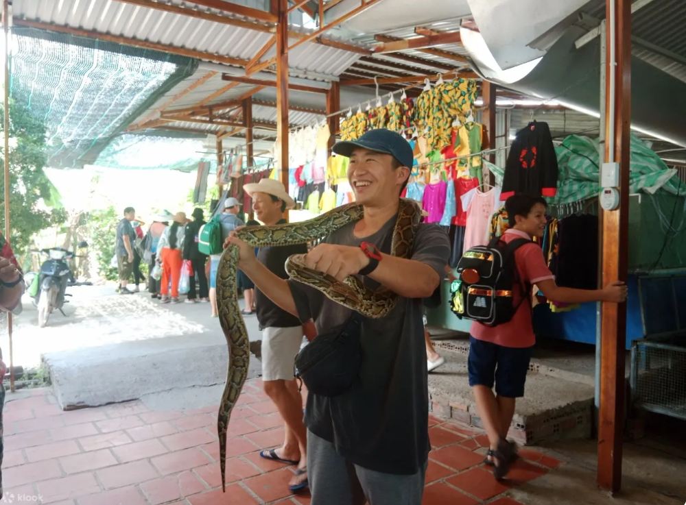【觀賞蟒蛇/鱷魚】有機會與黃金蟒互動(摸蛇拍照需自費)參觀鱷魚養殖場並體驗餵食鱷魚(需自費)。