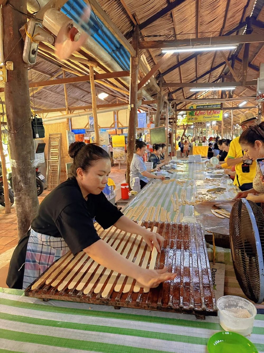 【椰子糖製作工藝】為了滿足好奇心,我們將前往一個擁有許多小商店的村莊,這些小商店用湄公河三角洲椰子樹製作椰子糖和手工製品(椰子榨汁、熬漿、冷卻切塊、包裝)。