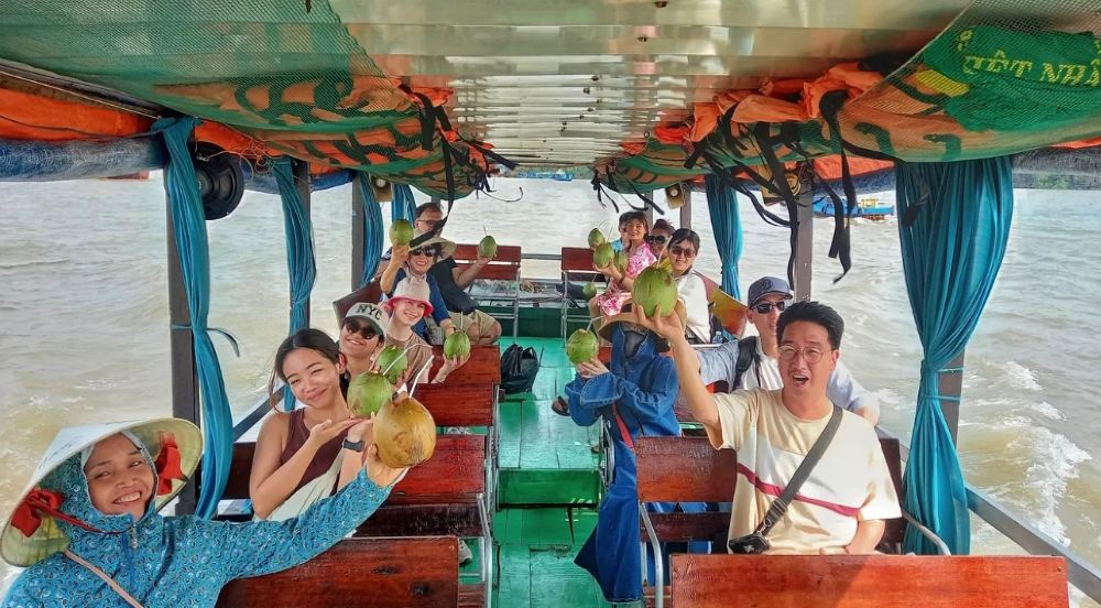 乘船感受南越水上生活,遊覽一路上能看到:椰子、水椰子山竹、火龍果、芒果、榴蓮多不勝數的熱帶水果。午餐