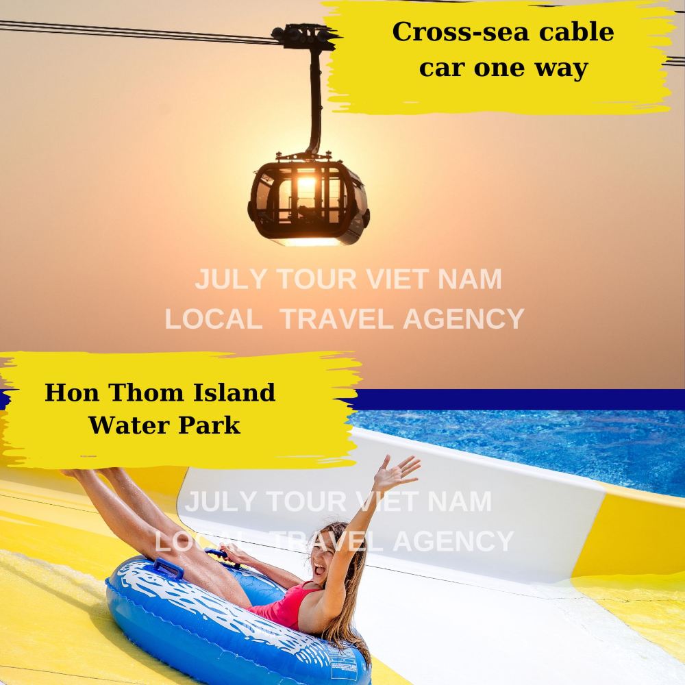 踏上香島HON THOM ISLAND 在這裡可以遊玩主題項目如:雲霄飛車、旋轉盤、水樂園等,以後搭乘跨海纜車回碼頭。在纜車上可以俯視下面的美景會讓您震驚。