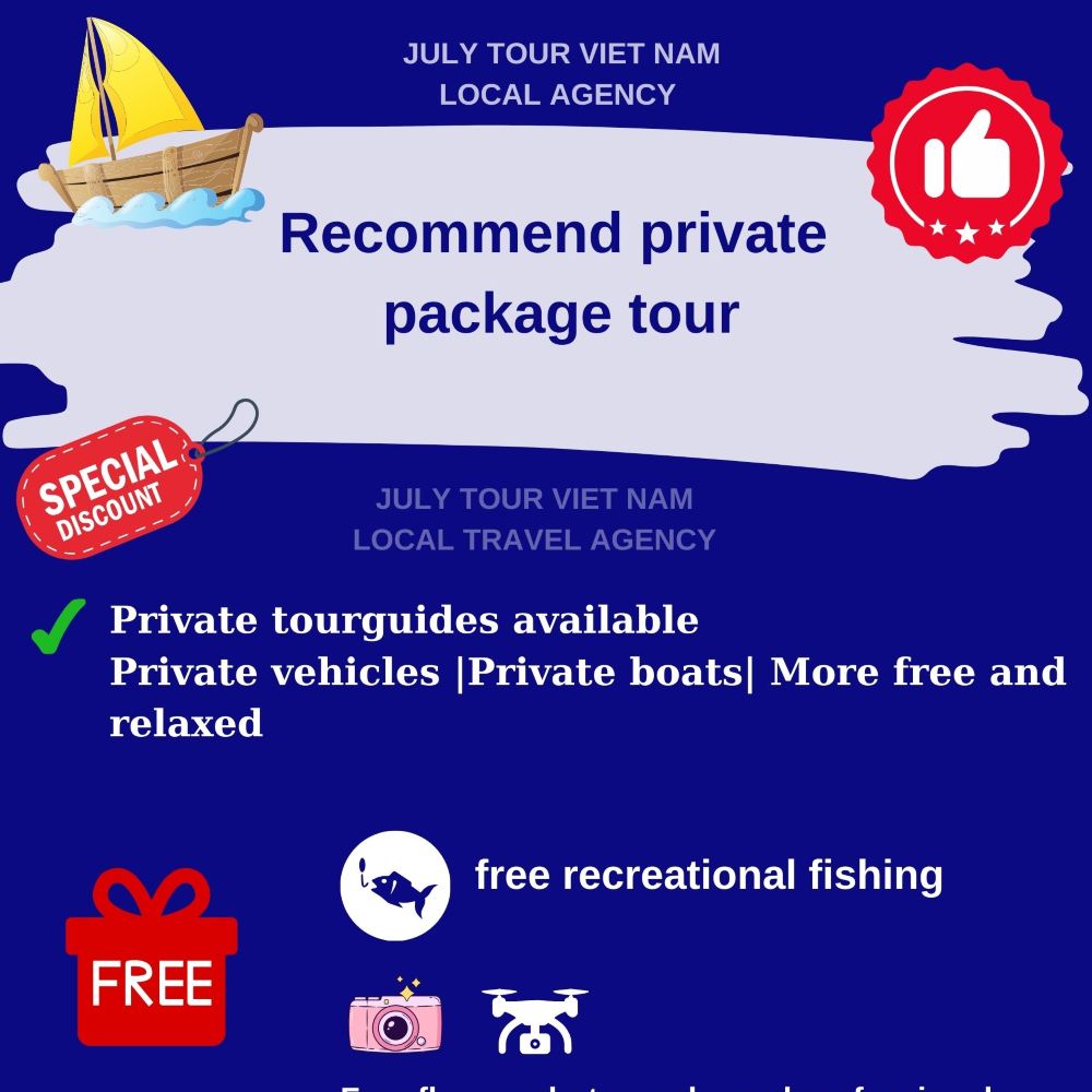- 12:00: 看天氣狀況選擇帶客人到MAY RUT TRONG ISLAND 雲退島或FINGER ISLAND 手指島海灘上休息用午餐。餐後休息、自由觀光。天氣允許情況下贈送遊客sup船航拍。