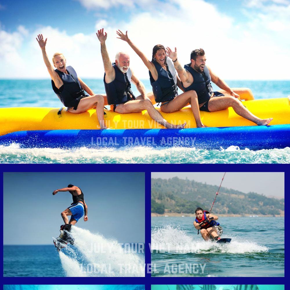 - 9:30-10:15: 到達HON ROI/HON DUA ISLAND 椰子島/瑞島區域有漂浮海上運動中心,快艇停靠這裡,有各種海上娛樂項目遊客可以自費參加如海底慢步、降落傘、摩托艇等。沒有要求自費遊玩的客人請依照我們導遊安排稍微等候其他客人或依照導遊實際安排為準。
