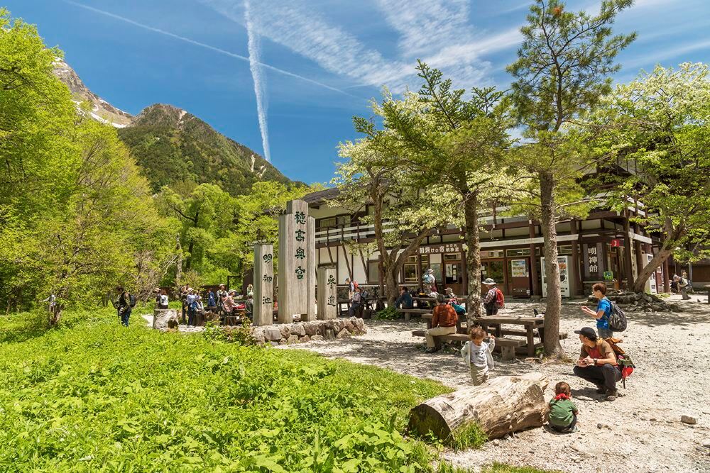 ▲ 【穗高神社奧宮】 在穗高神社奧宮前,設有名為「嘉門次小屋」的休息場所,坐擁自1880年創業以來的漫長歷史。