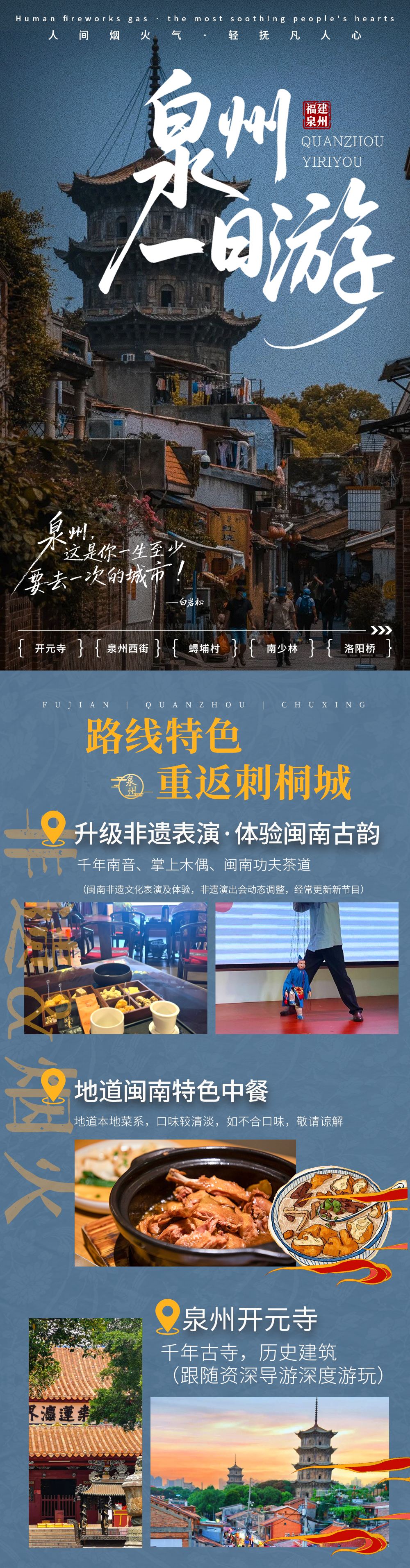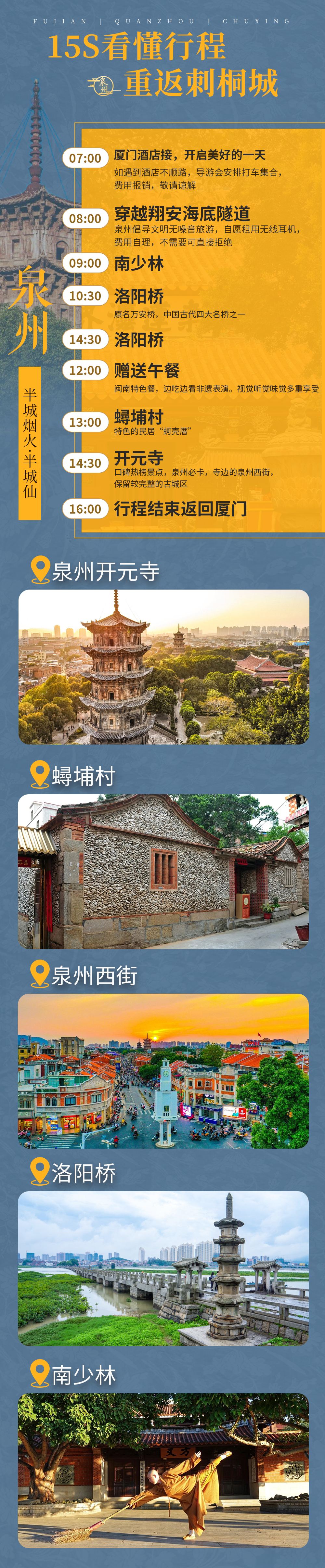【行程安排】洛陽橋——南少林——贈送午餐——非遺表演——蟳埔村——開元寺——泉州西街