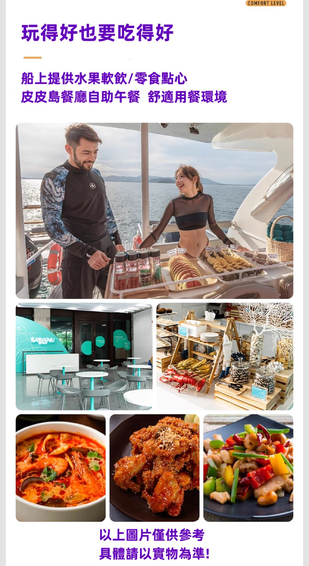 碼頭出海的時間根據實際安排進行、 船程僅供參考、 具體請以實際行駛為準景點活動