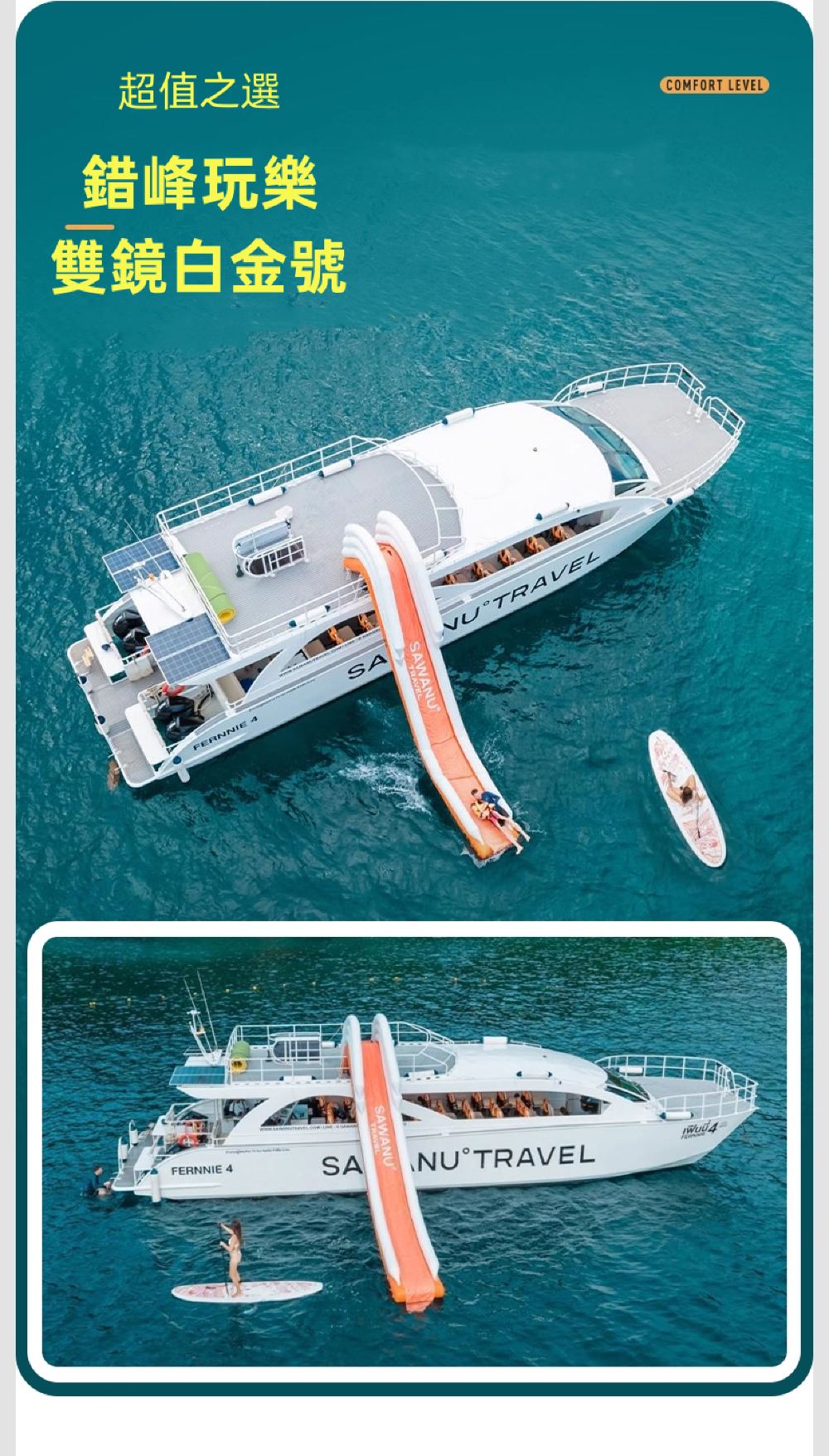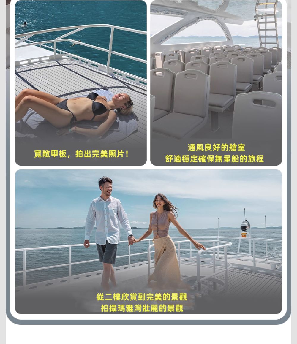 海上滑梯 | 寬敞空間 | 雙層甲板 | 穩定舒適