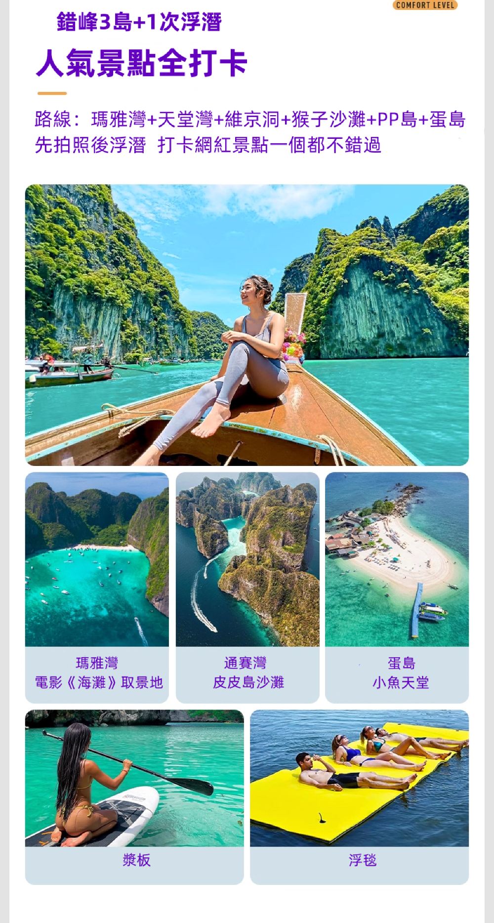 ● 一站式享受4個島嶼,包括PP島、瑪雅灣、蛋島和蜜月島,性價比高