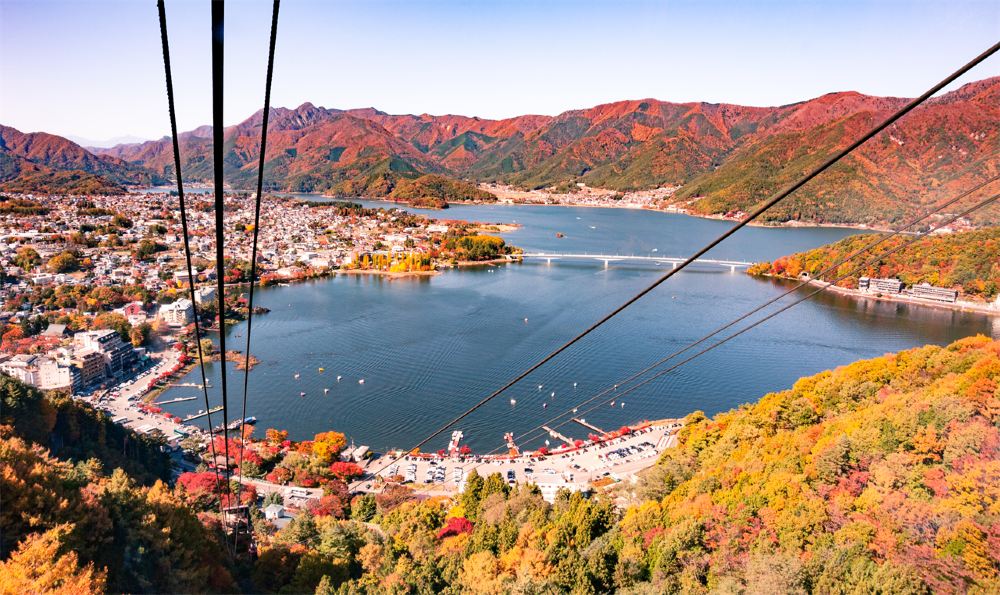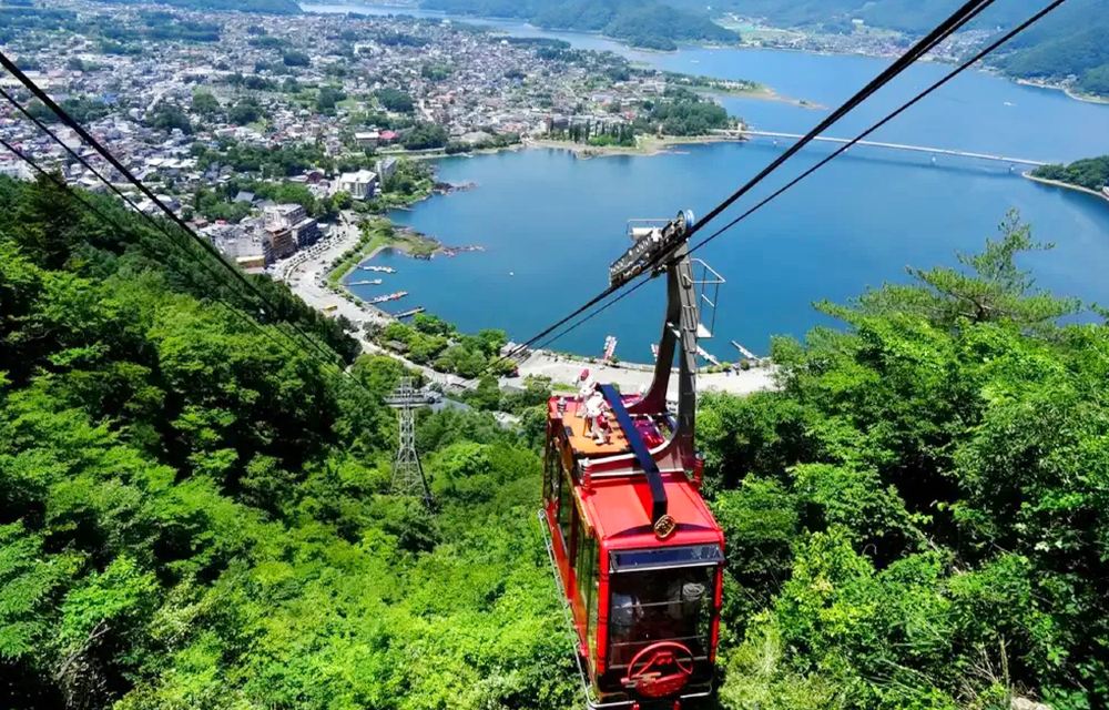 ▲ 【河口湖網紅全景Kachikachi山纜車】 河口湖海拔830公尺,面積5.7平方公里,湖岸線曲折交錯,岸邊有眾多眺望富士山的視點。在這裡可以拍攝到湖水中的富士山倒影,景色迷人壯觀。 乘坐河口湖畔的Kachikachi山纜車,沿途欣賞美麗的風景。在標高1075公尺的觀景台上,是欣賞富士山和河口湖全景的最佳位置。若天氣好的話更可以看見南阿爾卑斯山