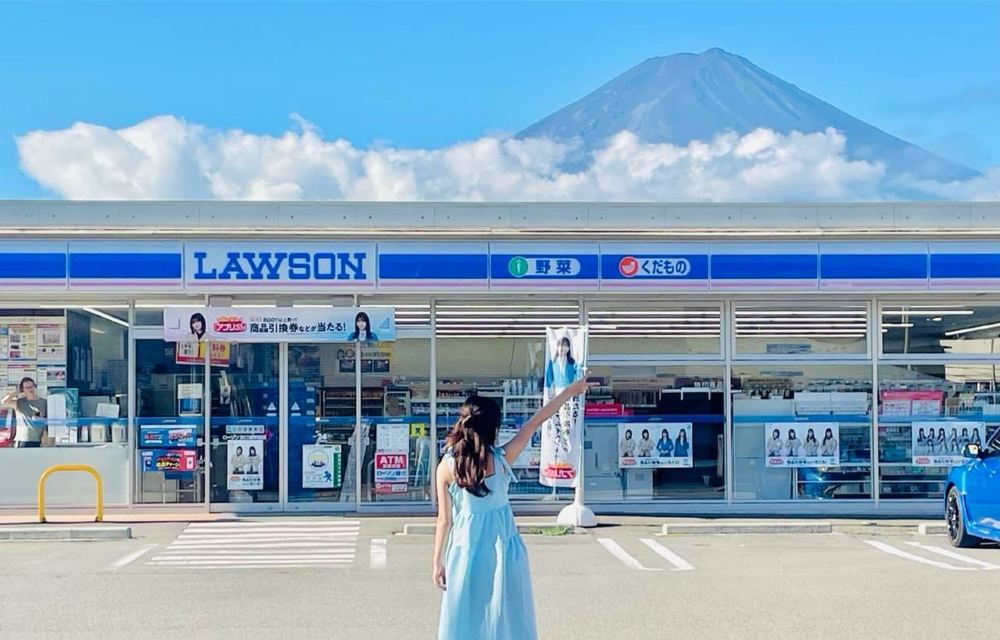 ▲ 【羅森便利店--易遊網 Moments聖地(約20分鐘)】 河口湖網紅羅森便利店怎麼拍街景?架起腳架放到對街開啟人像模式,耐心等到人少時趕緊抓拍!!拍照雖然美,但是要過馬路,一定要注意安全哦!