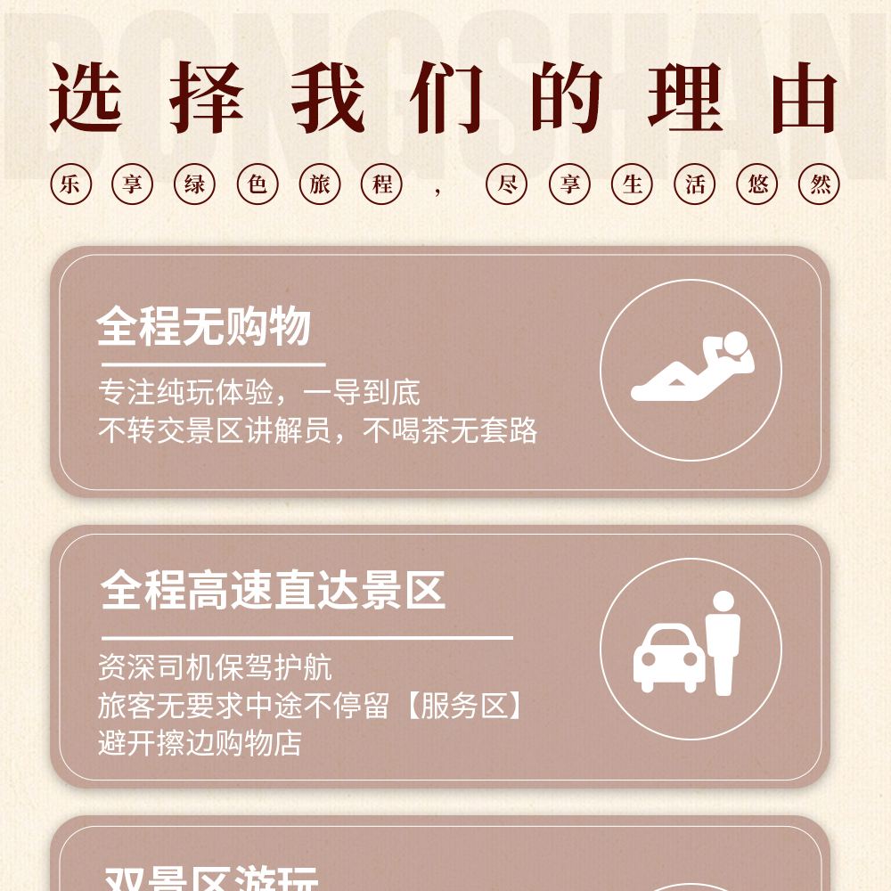 【無憂來回+精選接駁,開啟省心之旅】專業司機,平穩駕駛,一人一座,徹底解放雙手和大腦,將精心投入美景