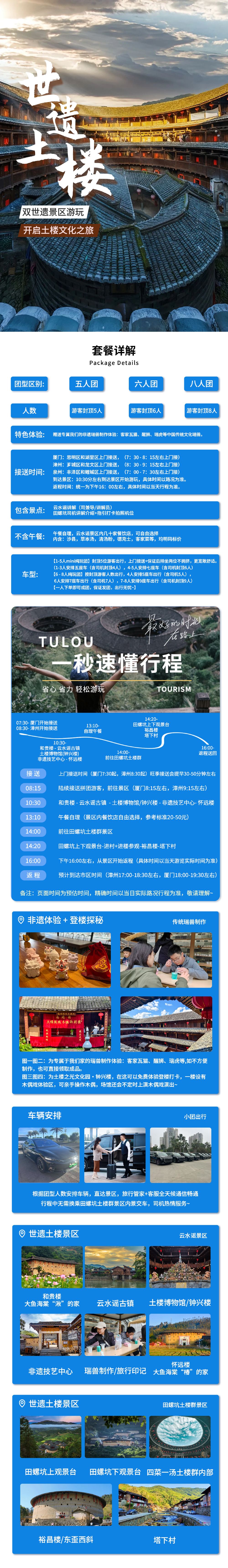 含雲水謠古鎮+和貴樓+懷遠樓+土樓博物館鍾興樓全程陪同導覽服務,旺季2-3團拼1位導覽員。景點活動