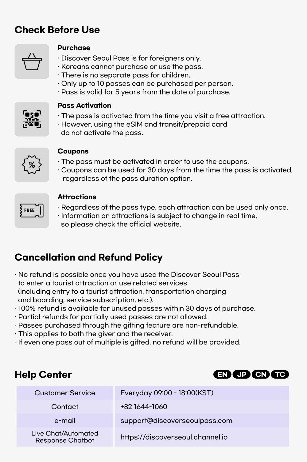 - Discover Seoul Pass 的有效期為自購買日起5年。
