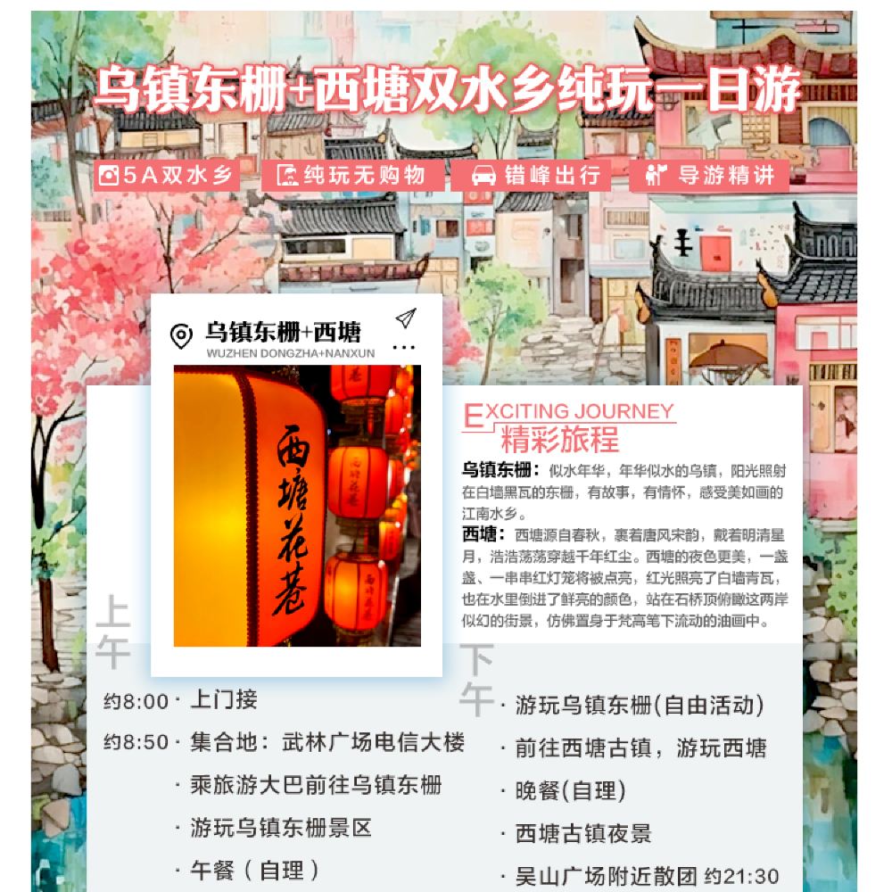 【舒適跟團】雙水鄉組合,優化遊覽線路,不緊不慢中遊覽兩大5A級水鄉古鎮。