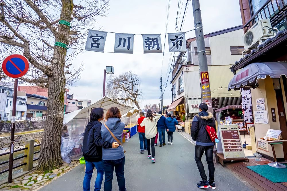 ▲ 宮川早市是日本著名的早市之一,已有約300年的歷史。早市沿宮川河岸開設,您可以在這裡找到當地新鮮採摘的蔬菜水果、傳統漬物、手工工藝品及特色小吃,體驗高山當地早晨充滿活力的生活氛圍。【堵車嚴重時,抵達可能已經散市,請一定知悉!】