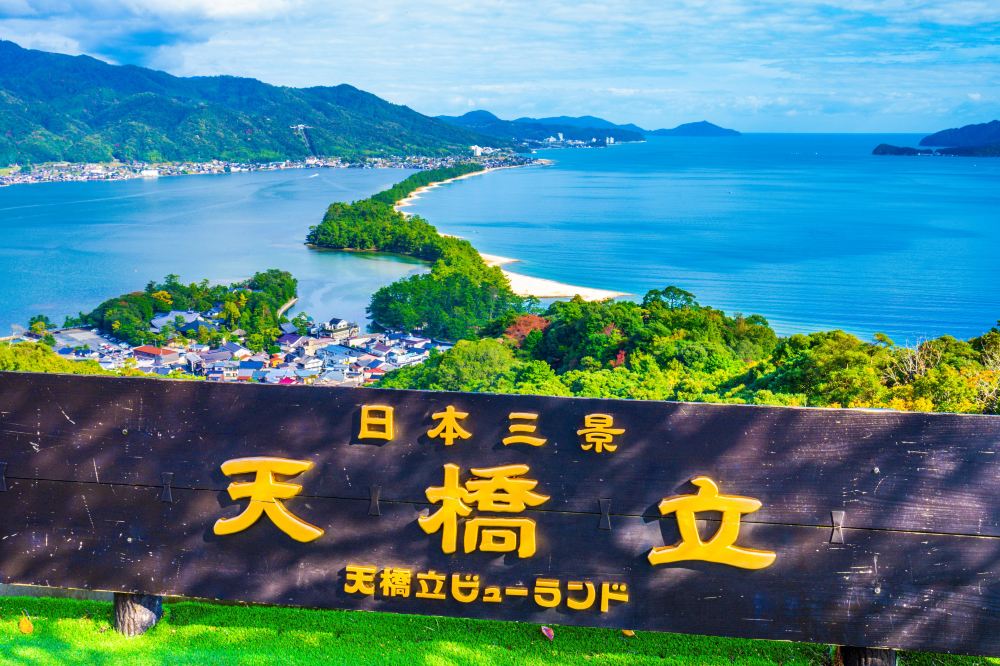 ▲ 【天橋立】天橋立以擁有日本三景之一而聞名,因地殼的推擠作用,在海上形成一個長約3.6公里的沙洲,上面有8000多棵松樹。天橋立的意思是「天堂橋」,因為從沙洲兩旁的山上俯瞰時,看起來如同連接天堂與人間的通道。海灣的另一側是傘松公園,可乘坐纜車抵達。一千多年來,當地人為了能欣賞到美麗的海灣風景,一直使用相同的姿勢,即彎下腰從兩腿之間倒著觀賞景色,沙洲就像一條騰空而起的巨龍。
