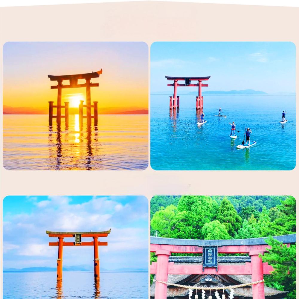 ▲ 傳說離神明最近的水上鳥居——琵琶湖白須神社,是近江國最古老的神社之一。神社以其獨特的水上鳥居聞名,仿若漂浮在湖面上的神秘之門。清晨或黃昏,湖面平靜,鳥居與湖水相映成趣,構成一幅美的畫卷。
