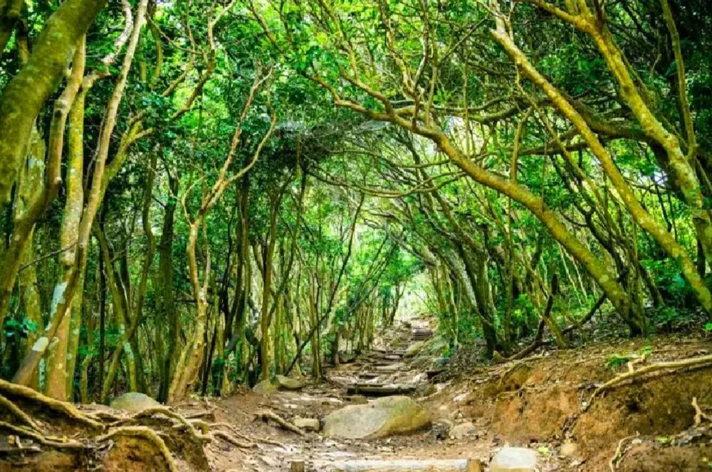▲ 【芥屋大門】在系島的芥屋大門公園裡面,有一處由海邊灌木叢樹叢圍繞而形成的森林步道,步道的入口處被樹林覆蓋,有點隱蔽,像極了吉卜力童話裡的龍貓森林,因而瞬間爆紅成為IG打卡的熱門景點。長約數百公尺茂密不見天日的森林步道,走在其中讓人不禁期待或許可以在出口處巧遇傳說中的龍貓。