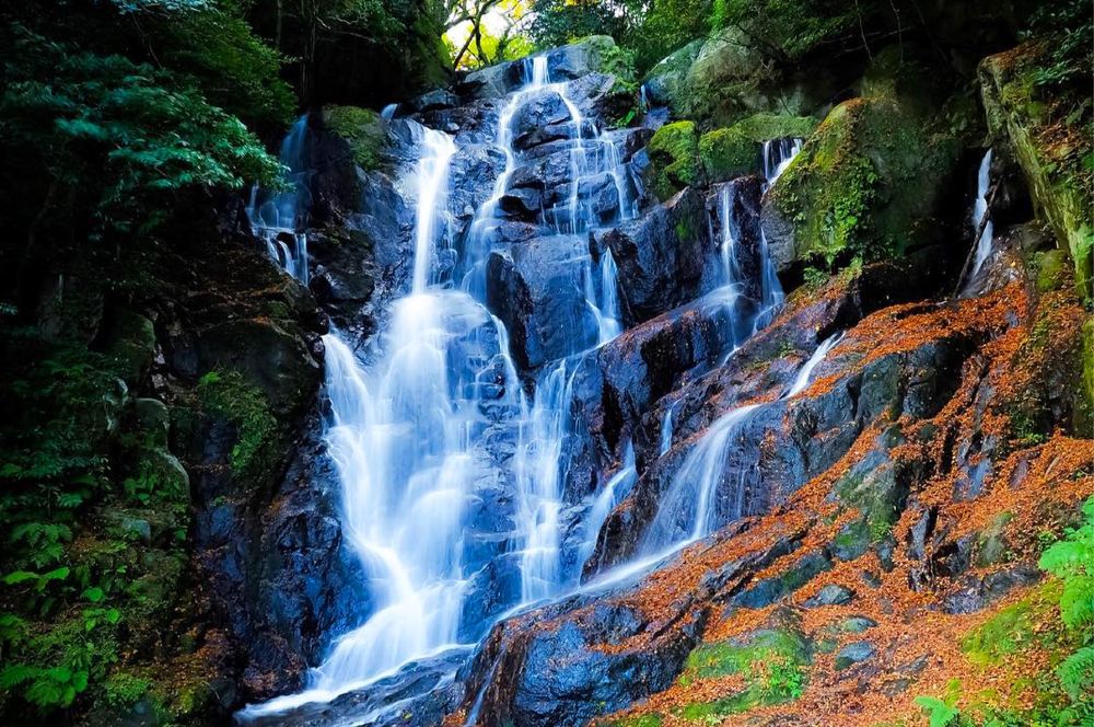 ▲ 【白絲瀑布】位於海拔900公尺的羽金山中腹之處,是福岡縣指定名勝。白絲瀑布高低差約24公尺,一如其名,瀑布的水流宛如細白絲線般淌流。夏季磅礡飛濺的水花讓人心曠神怡,是個充滿負離子和自然氣息的休憩場所,在日本也是相當知名的景點。