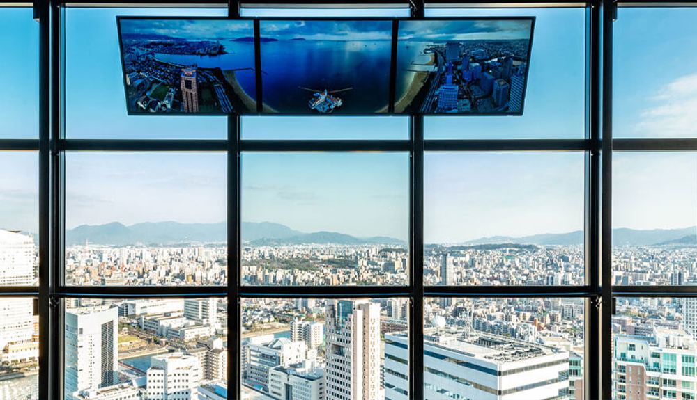 ▲ 【福岡塔】塔身為鑲嵌8,000片半反射玻璃的現代化建築,並以擁有熠熠生輝鏡之帆的「鏡帆」愛稱而受到大家的喜愛。透過高達123公尺的展望室的360℃大型全景落地窗,可將福岡街景和博多灣美景盡收眼底。