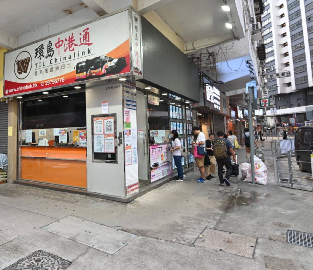 ▲香港上車點:太子上海街 — 上海街695號A舖中港通門市(近港鐵太子站C2 出口,鴉蘭街休憩處(三角公園)(維景飯店對面))
