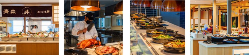 目光所及之處,您將感受到海灘派對的氛圍——自由、寬廣、熱鬧,提供宜蘭料理、東南亞風味餐點、特色港式燒鵝,以及專為孩子設計的自助區,還有整齊排列的產地直送海鮮。而 pelago 入口處的迷你廚房,正是凱渡對親子共樂的獨特詮釋。這是全台首間飯店獨創的「兒童廚房 KID’s kitchen」。邀請小朋友們在飽餐一頓後化身小小廚師,親手製作專屬甜點,同時家長也能盡情享用 Pelago 精心準備的各國美食,最後由小小廚師為父母獻上一道甜點,實現真正的「親子共樂」,讓晚餐不再只是晚餐。