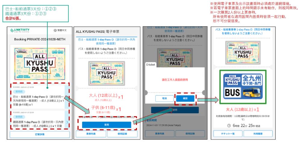 ・本通票的可使用期間為自遊客點擊使用開始的當日起至隔日凌晨2:59止。若在24:00~2:59之間上下車時,視同於前一天使用。