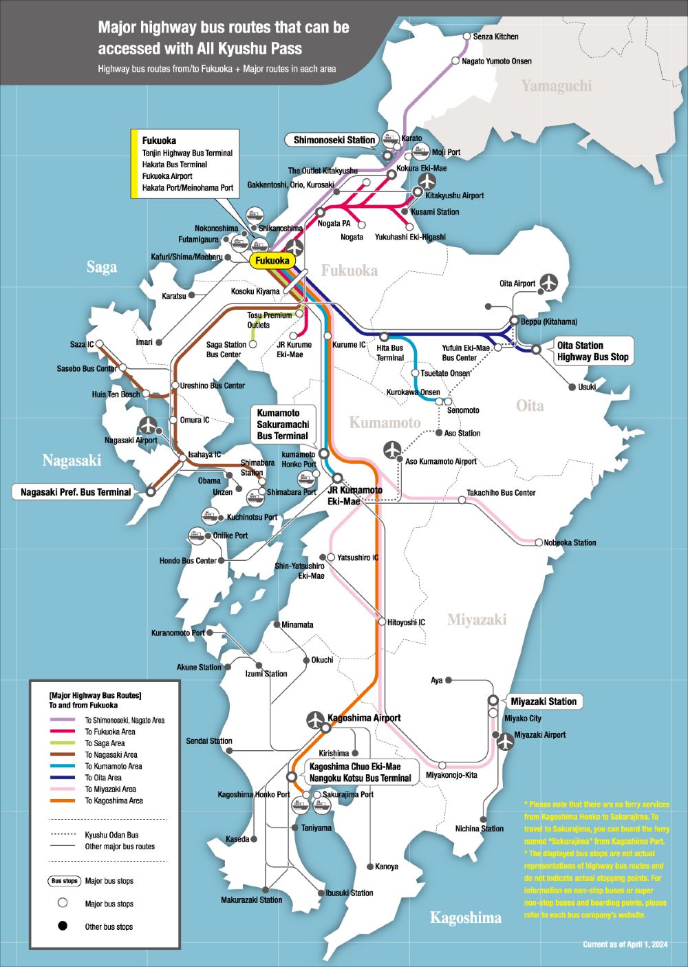 [巴士・船舶通票] 的適用區間與"SUNQ PASS全九州券"相同。有關[巴士・船舶通票] 詳情請參閱以下電子指南手冊。