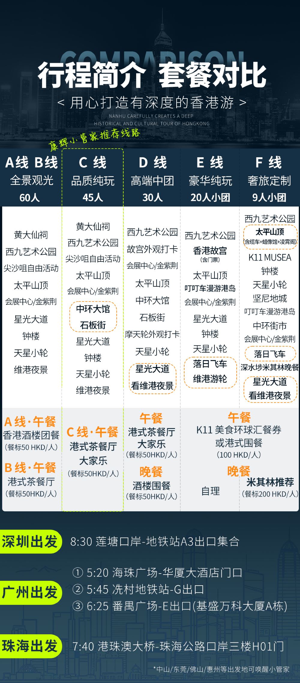 以下為【香港一日遊】所經景點,但不同套餐所走景點略有差異,具體以圖文詳情為準,或喚醒管家取得行程文件景點活動