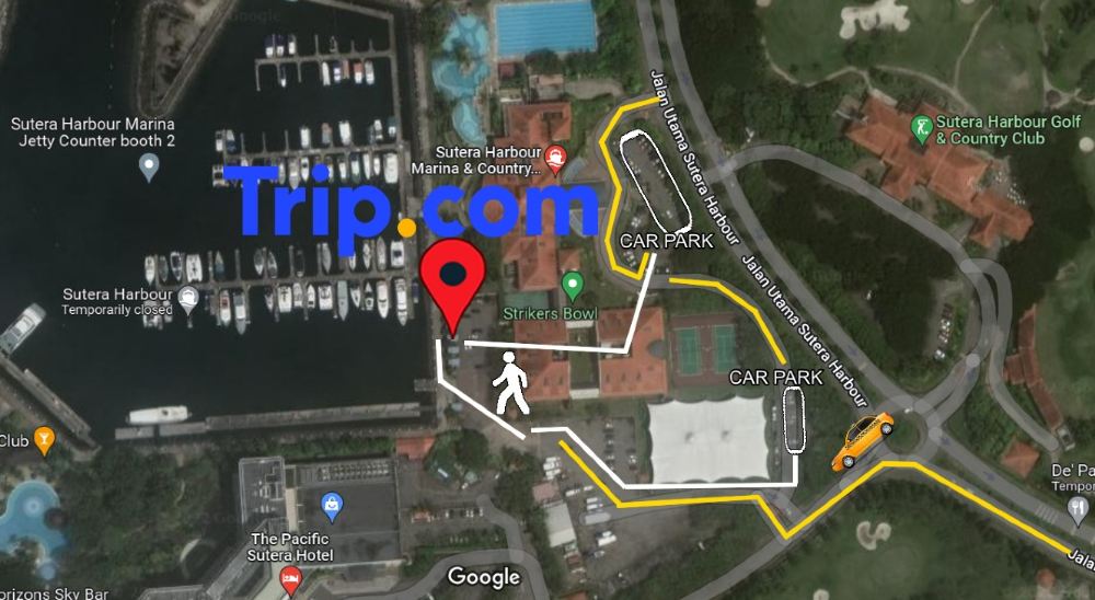 - 乘坐計程車或GRAB抵達Sutera Harbour Marina碼頭。根據提供的地圖,您會看到一個標有「Drop Point Gate」的區域,雖然這裡沒有明確的標誌,但您可以步行前往碼頭,在那裡找到我們的船票負責人。若您自駕,您可以將車停在附近的停車場,然後步行前往Sutera Harbour Marina碼頭,在那裡您會看到我們的船票負責人。