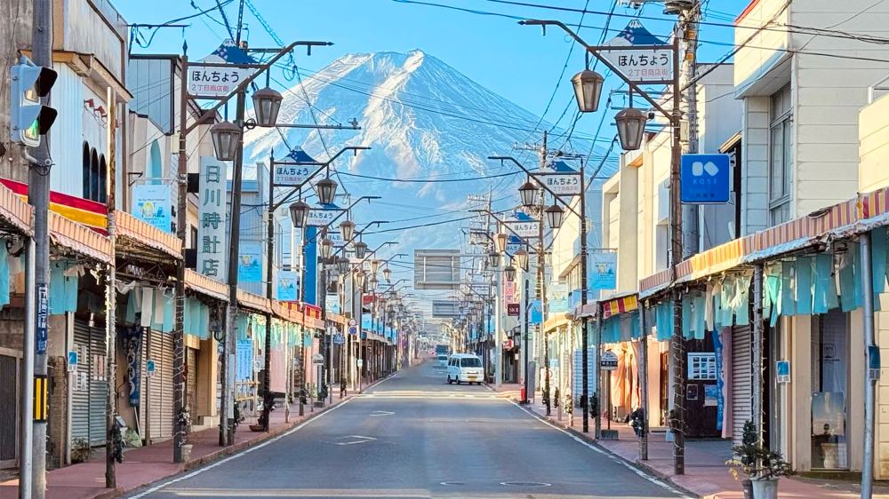 ▲ 【日川時計店】富士山絕美打卡地推薦 位於富士吉田市的日川時計店,因為其門前街道正對富士山而爆紅,成為了無數遊客心目中的「網紅拍照聖地」。這裡的老街氛圍與遠處富士山的壯麗景色完美融合,彷彿一幅靜謐又充滿懷舊感的風景畫